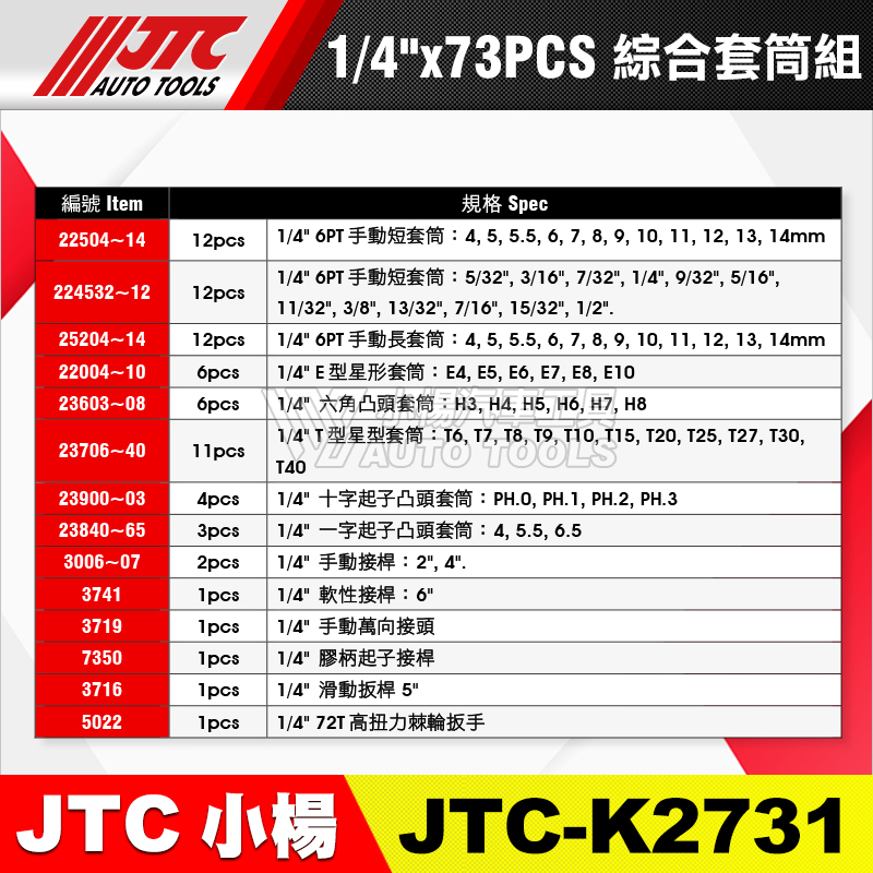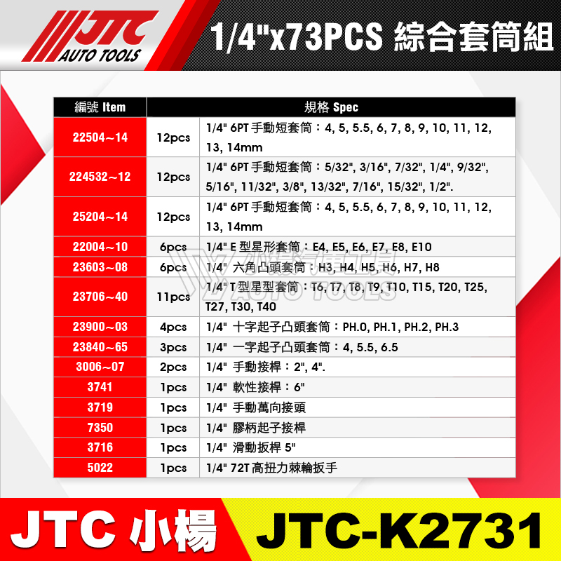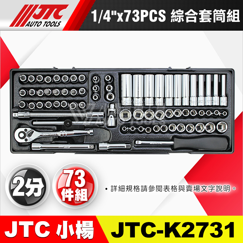 JTC-K2731 1/4"(2分) 73PCS 綜合套筒組(有蓋子)