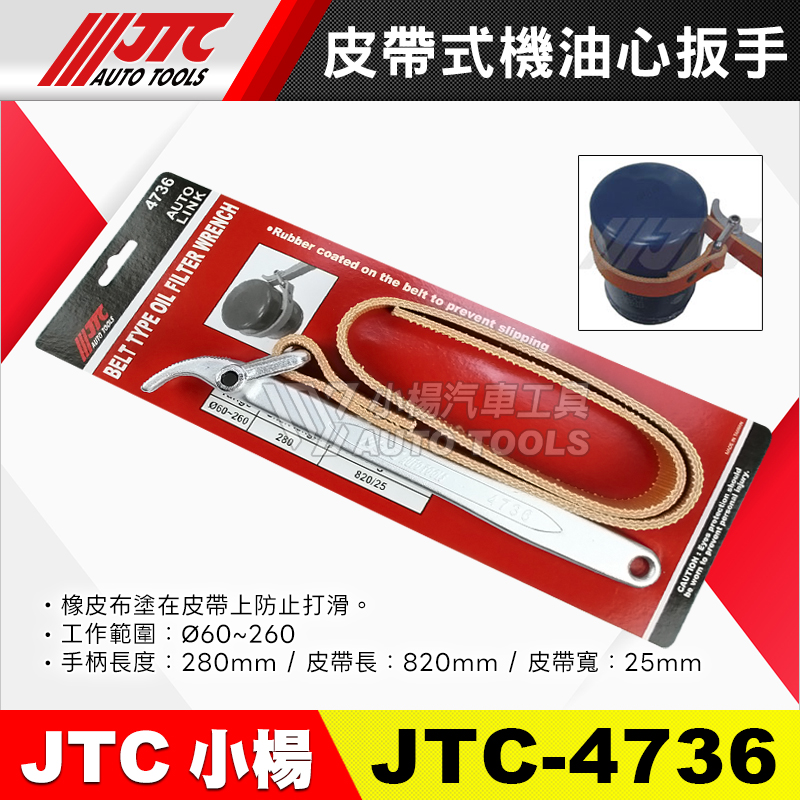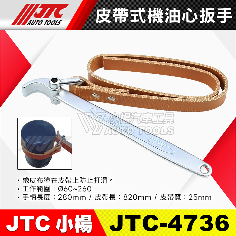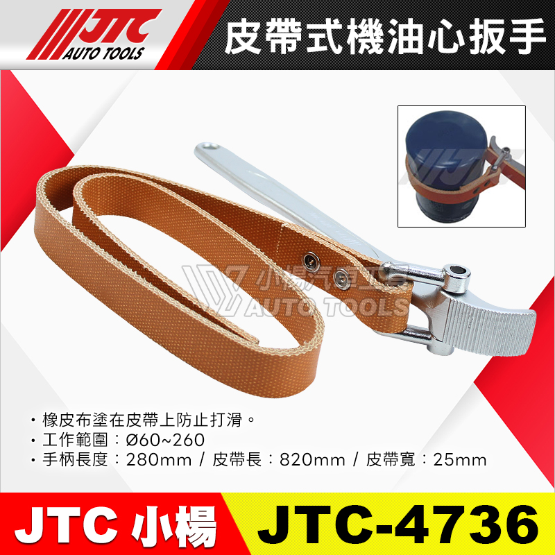 • JTC-4736 範圍:Ø60~260、手柄長:280mm、皮帶長/寬:820/25mm