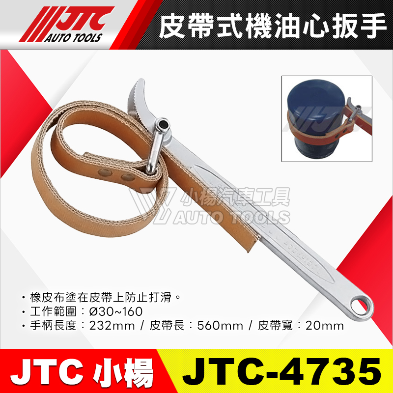 • JTC-4735 範圍:Ø30~160、手柄長:232mm、皮帶長/寬:560/20mm
