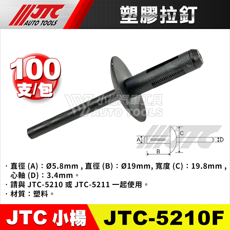 搭配 JTC 5210 直立式塑膠釘拉釘槍組 使用