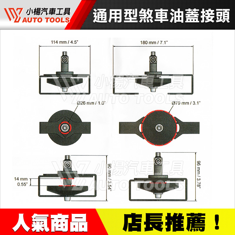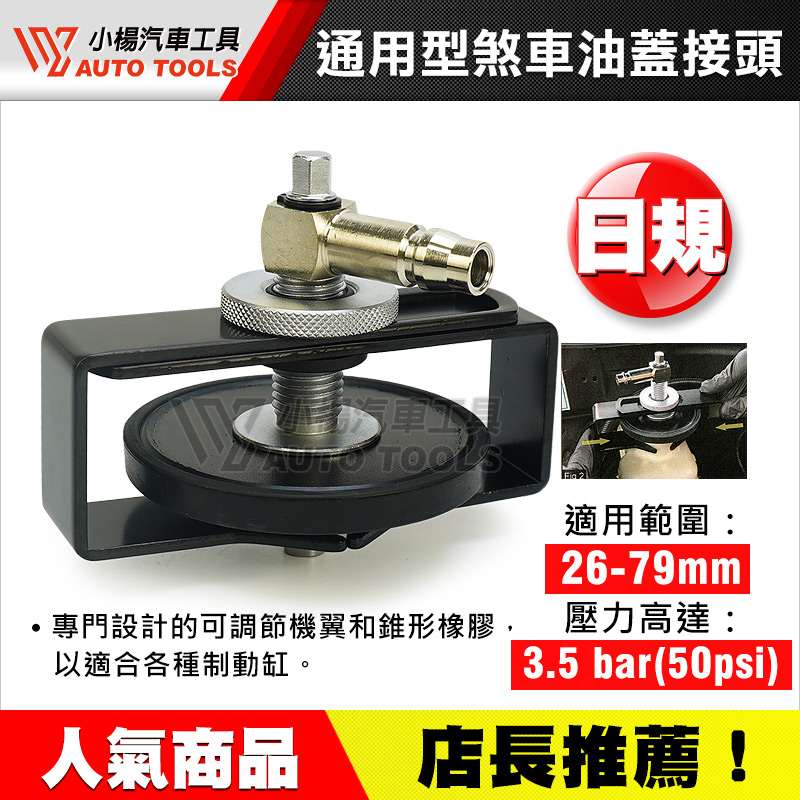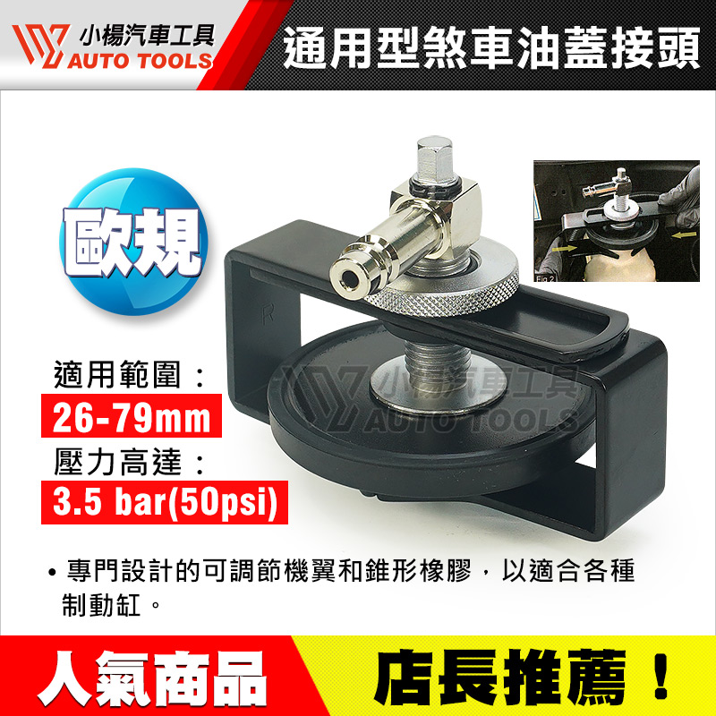 • 可調式設計和錐形橡膠,以適應各種煞車油蓋
