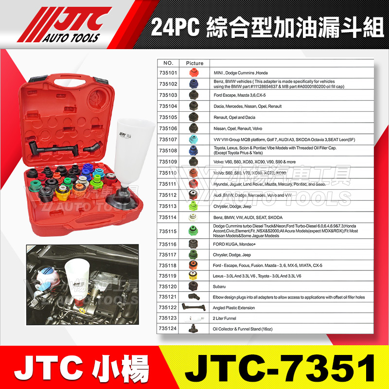 • 包含20個接頭,適用於大多數車型。