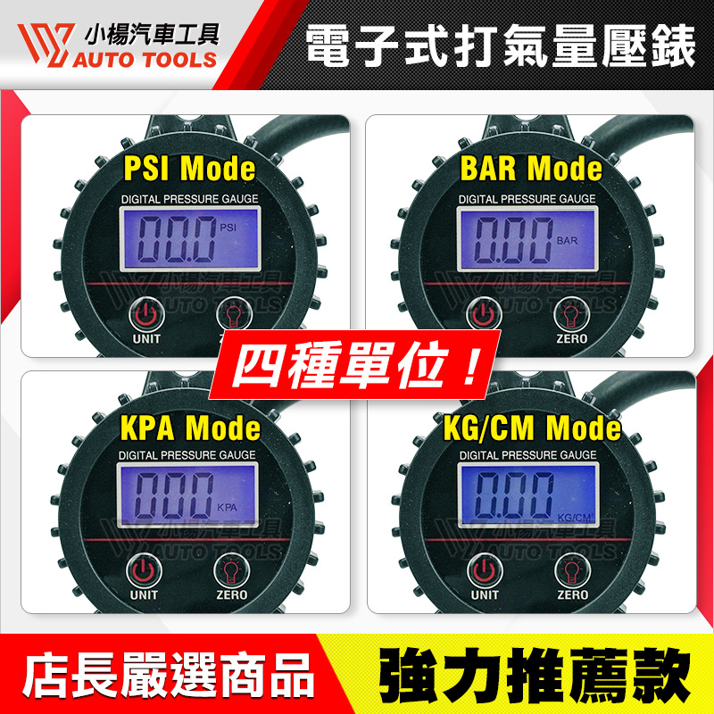四種單位可選PSI,BAR,Kgf/cm2,KPa。
