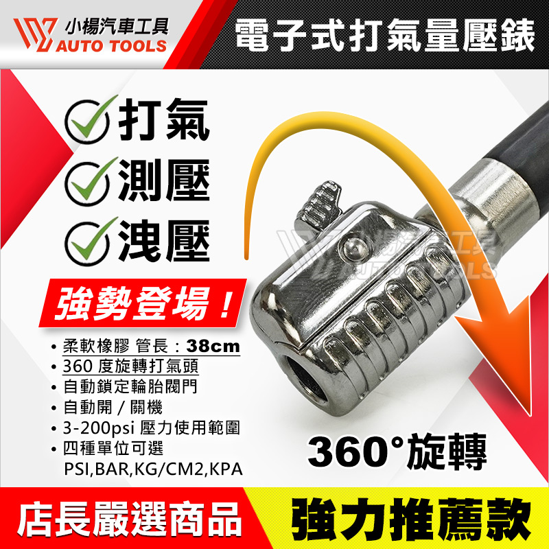 360度旋轉打氣頭搭配柔軟橡膠管。