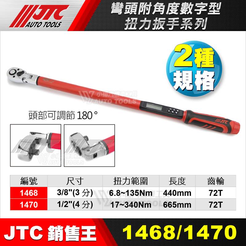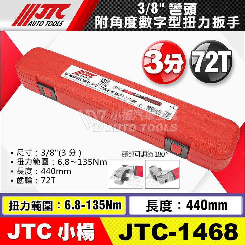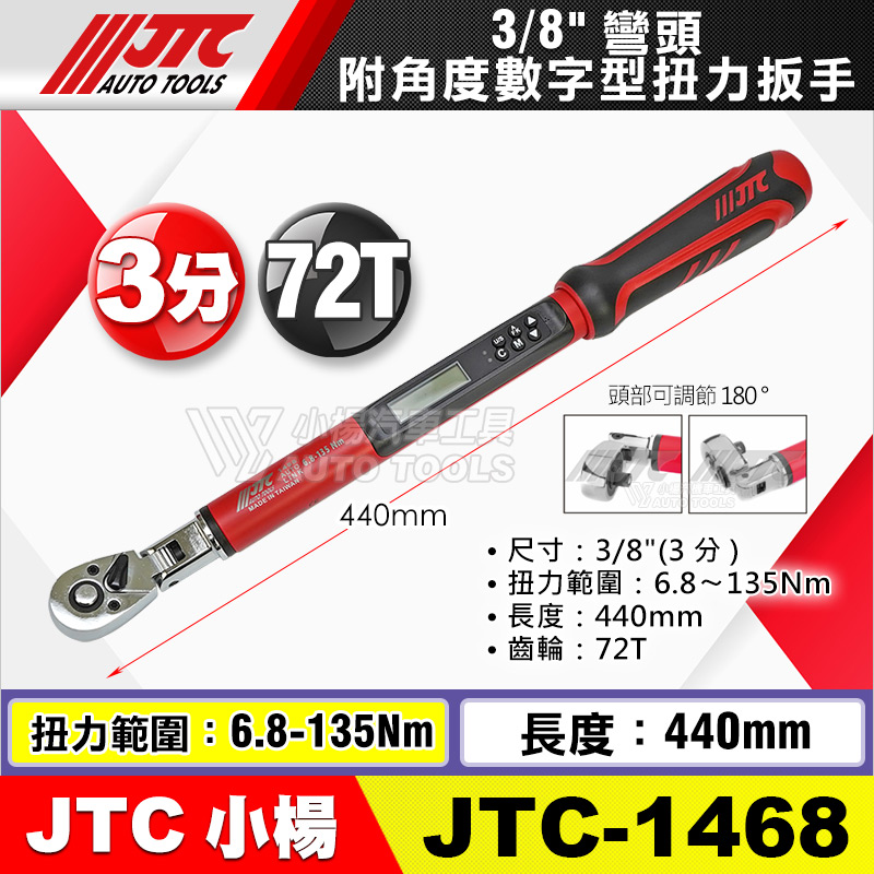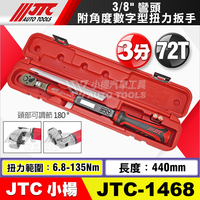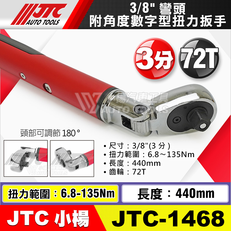 JTC-1468:3/8" (3分) ;扭力範圍6.8~135Nm;長度440mm;72齒