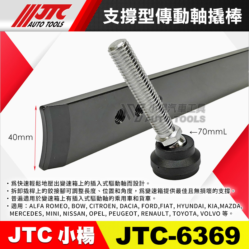 • 拆卸撬桿上的鉸接腳可調整長度、位置和角度,為變速箱提供最佳且無損壞的支撐。
