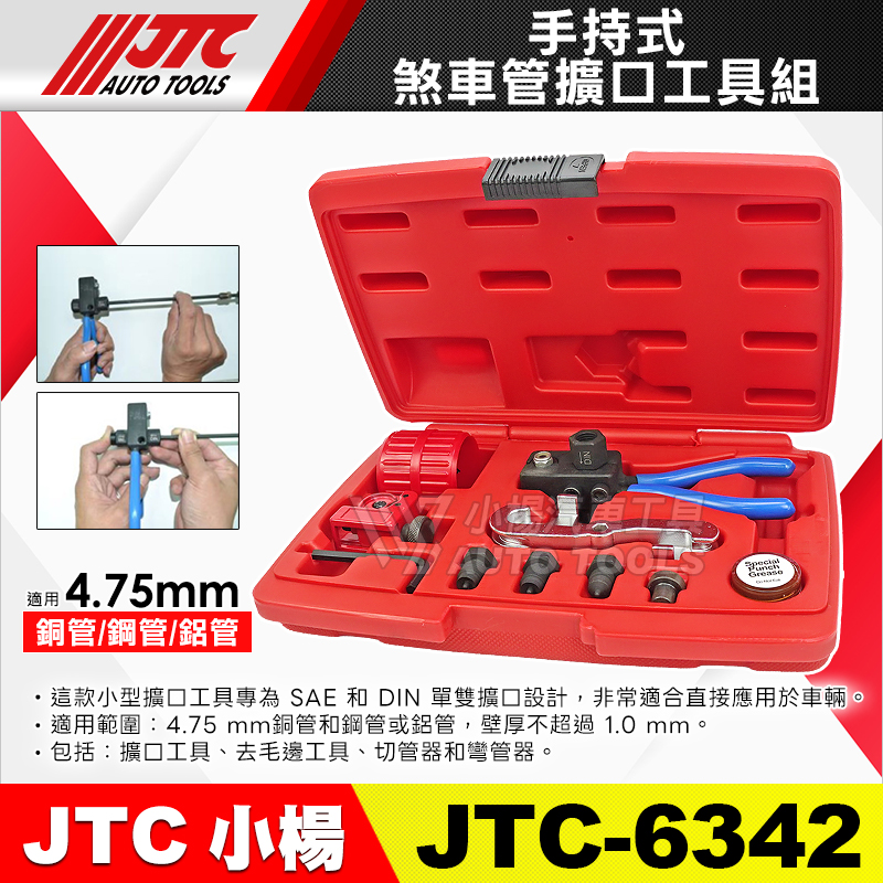 這款小型擴口工具專為 SAE 和 DIN 單擴口和雙擴口設計,對於直接應用於車輛非常有用。