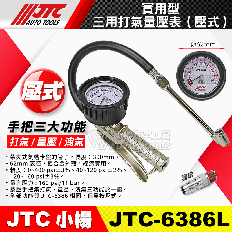 JTC 6386L 實用型三用打氣量壓表 壓式