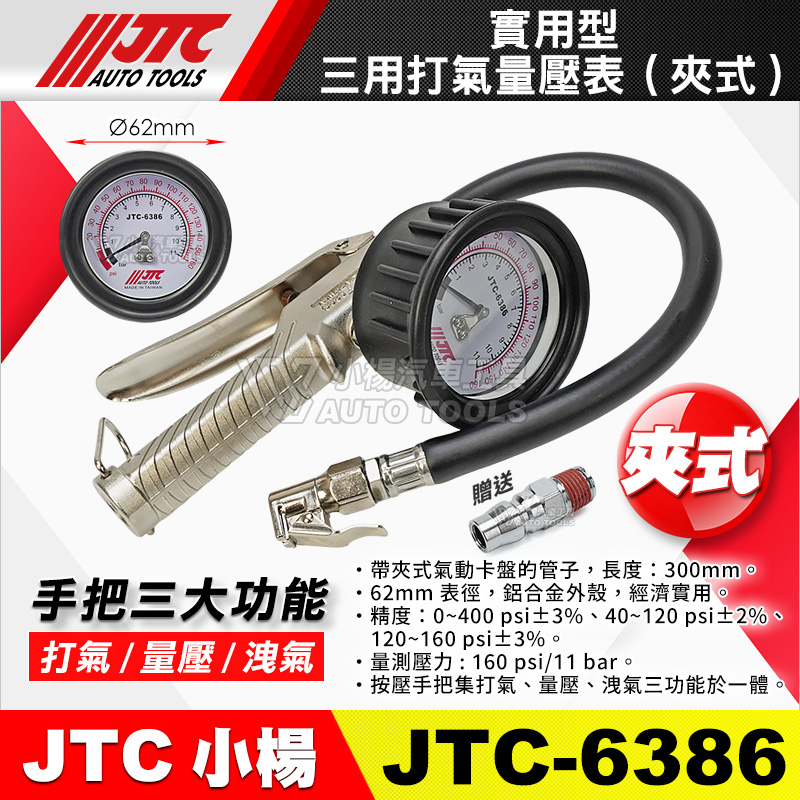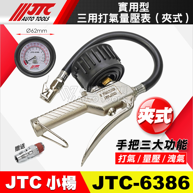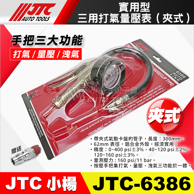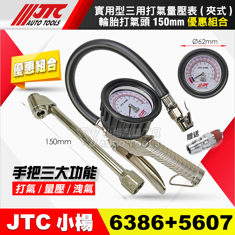 【組合優惠】JTC-6386 夾式打氣表 + JTC-5607壓式打氣頭