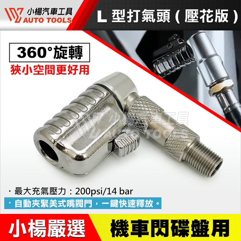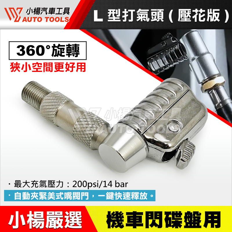 ※ L型打氣頭(壓花版) → 適合機車(加大碟盤)、小車,機車閃碟盤用