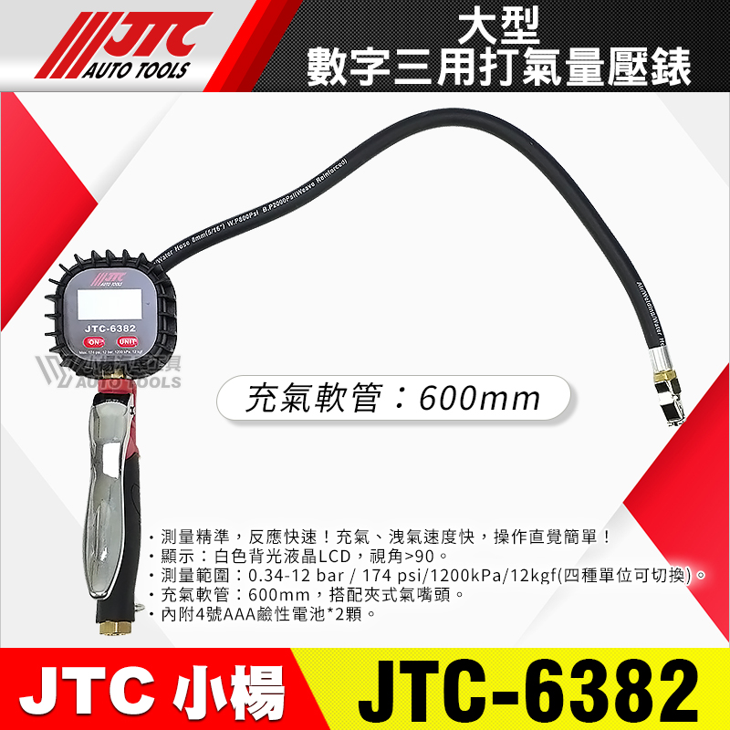 • 單位切換:4種單位一鍵切換 - bar / psi / kPa / kgf