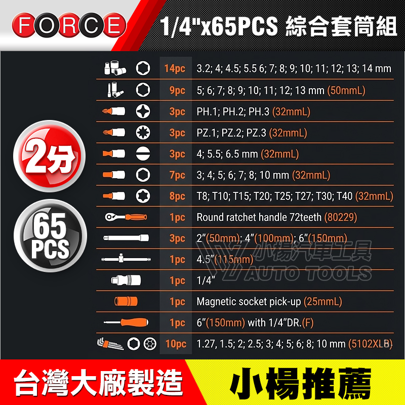 • 2分6角短套筒14PCS:3.2、4、4.5、5、5.5、6、7、8、9、10、11、12、13、14mm