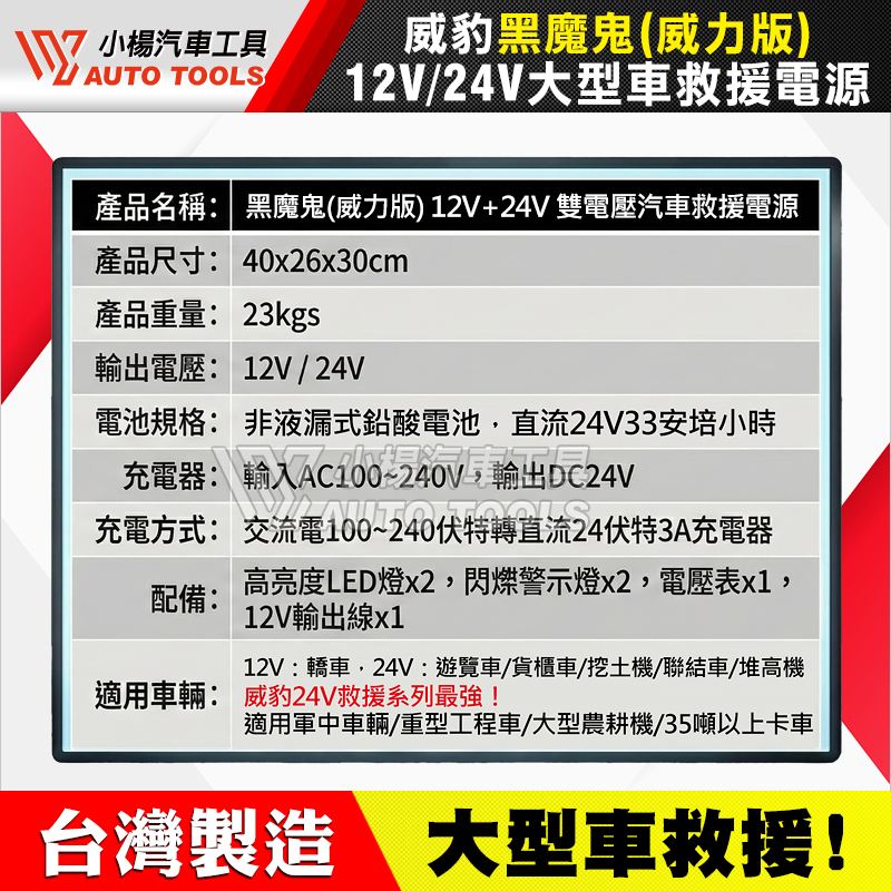 威豹 黑魔鬼 威力版 12V/24V 大型車救車電源