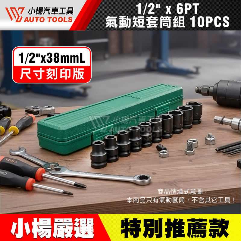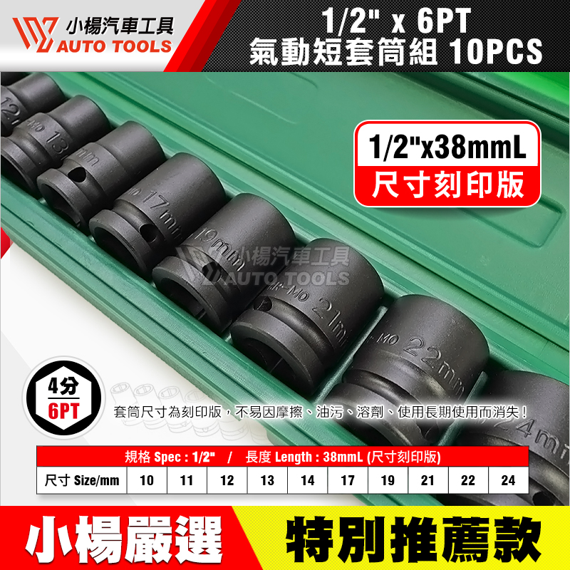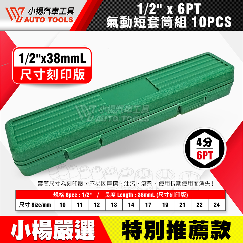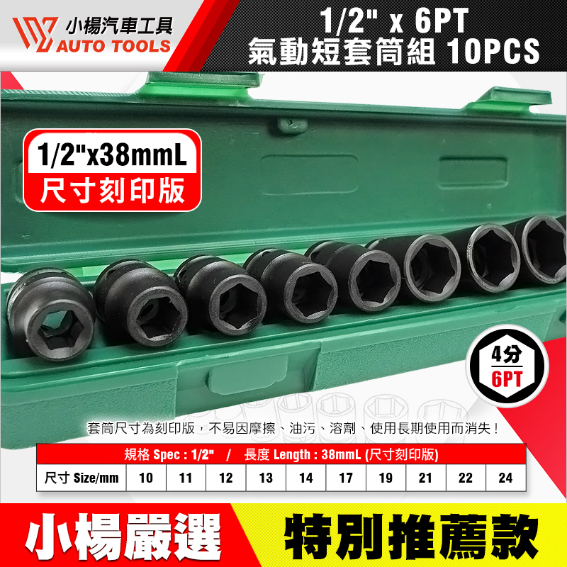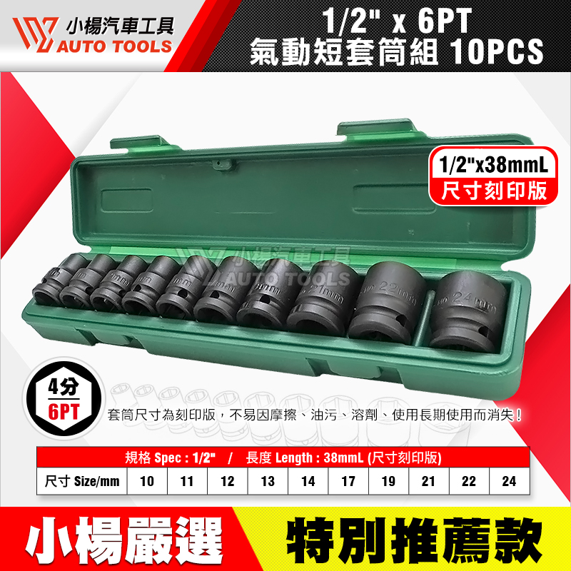 四分(1/2")六角氣動短套筒組 10件組