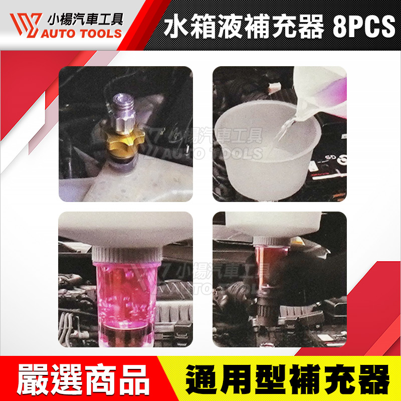 功用:更換水箱,造成管路有很多空氣時,可以快速添加引擎冷卻液,並同步排除空氣,加速保養及維修,日系跟歐系小車皆可使用。