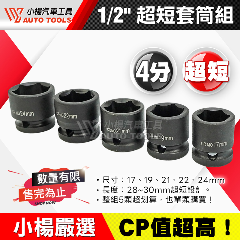 1/2"(四分)超短套筒組5pcs