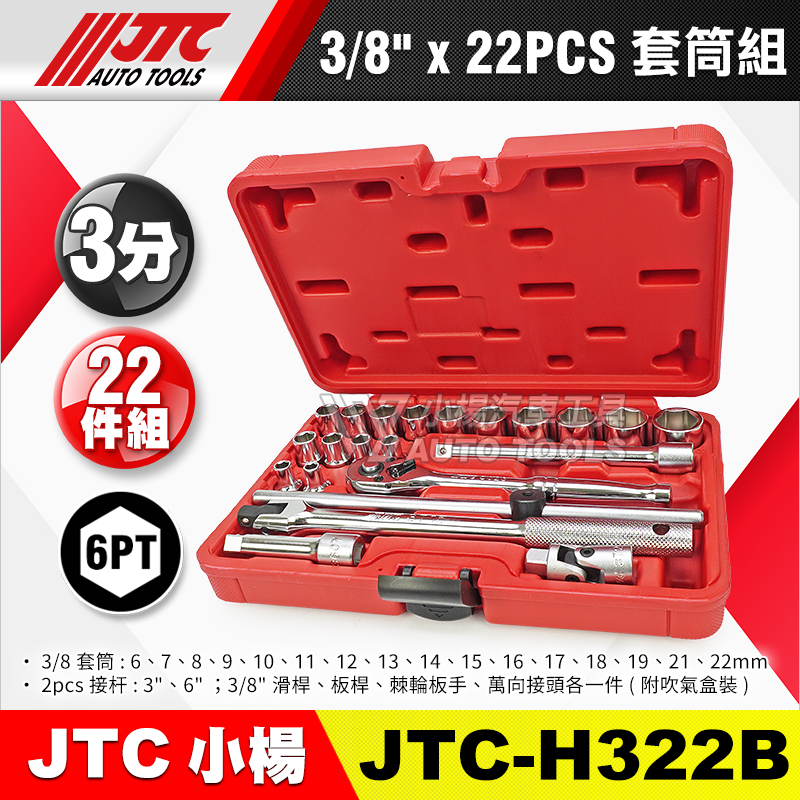 • 16 件- 3/8"三分六角短套筒:6、7、8、9、10、11、12、13、14、15、16、17、18、19、21、22 mm