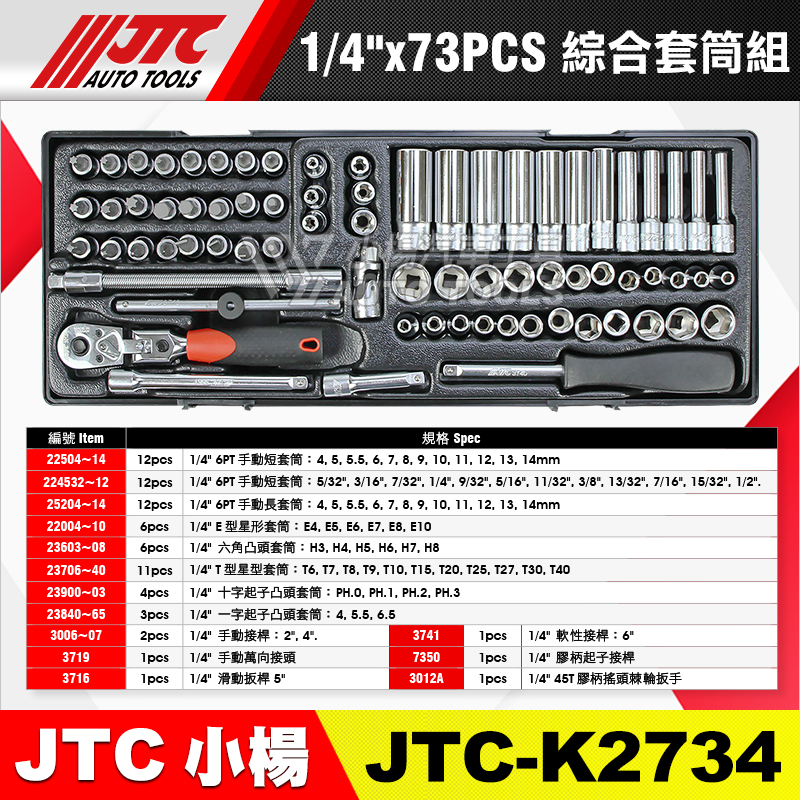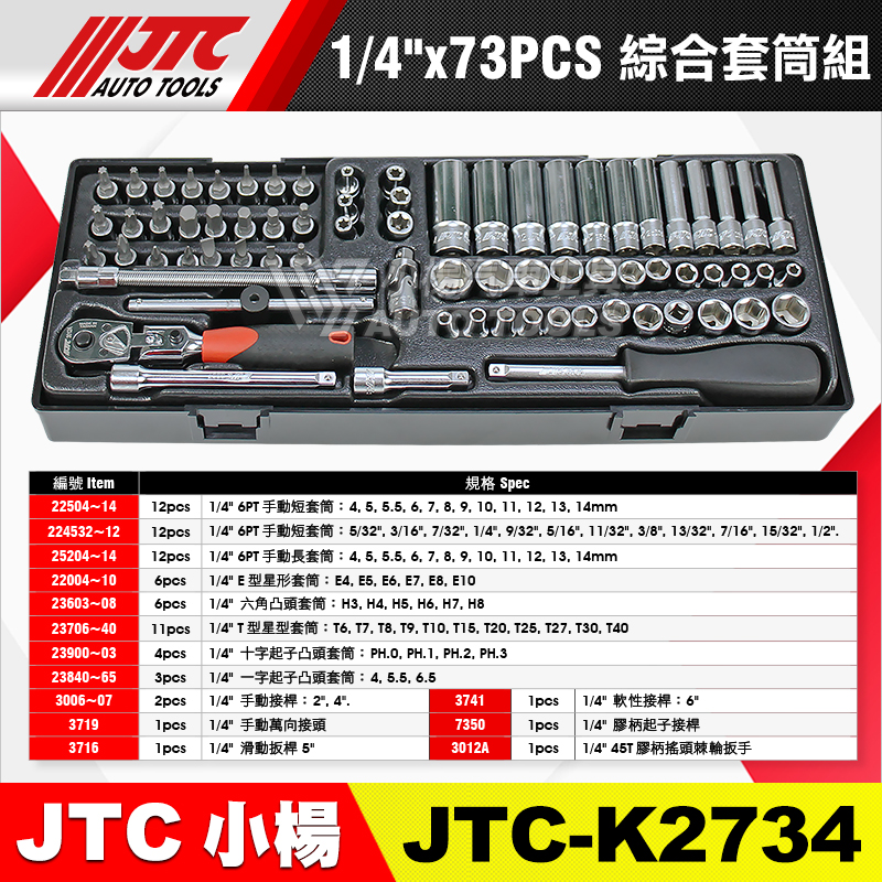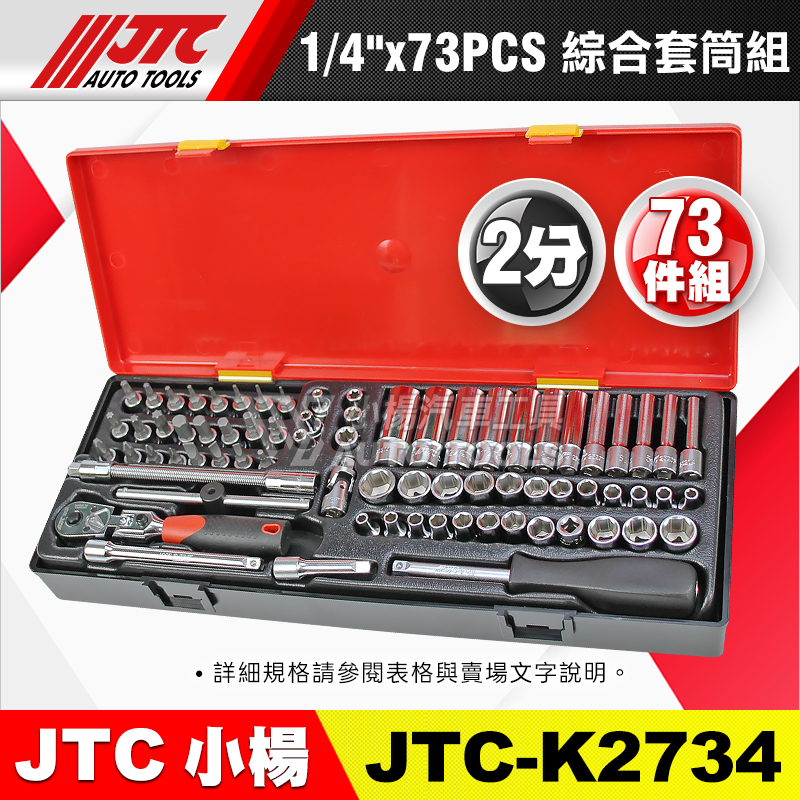JTC-K2734 1/4"(2分) 73PCS 綜合套筒組 (有蓋子)