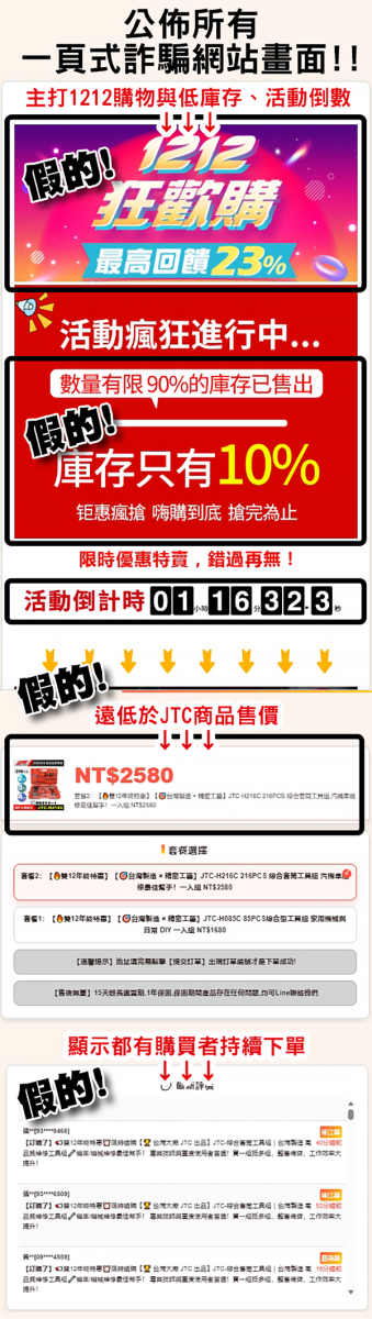 如已受騙或發現可疑網站,請立即撥打165反詐騙專線報案,謝謝大家協助檢舉,一起杜絕詐騙!一頁式詐騙網站訂購畫面如下!